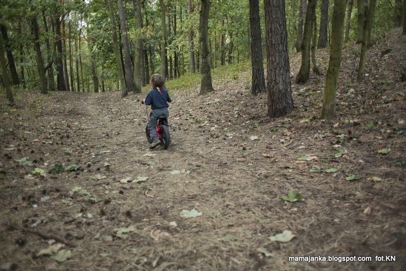 Janek testował rower z wielkim zapałem, jeżdżąc po różnych rodzajach nawierzchni, a ja uważnie obserwowałam jak sprzęt się sprawuje, dźwigałam ze sobą do przedszkola, z i do piwnicy, i robiłam notatki :P